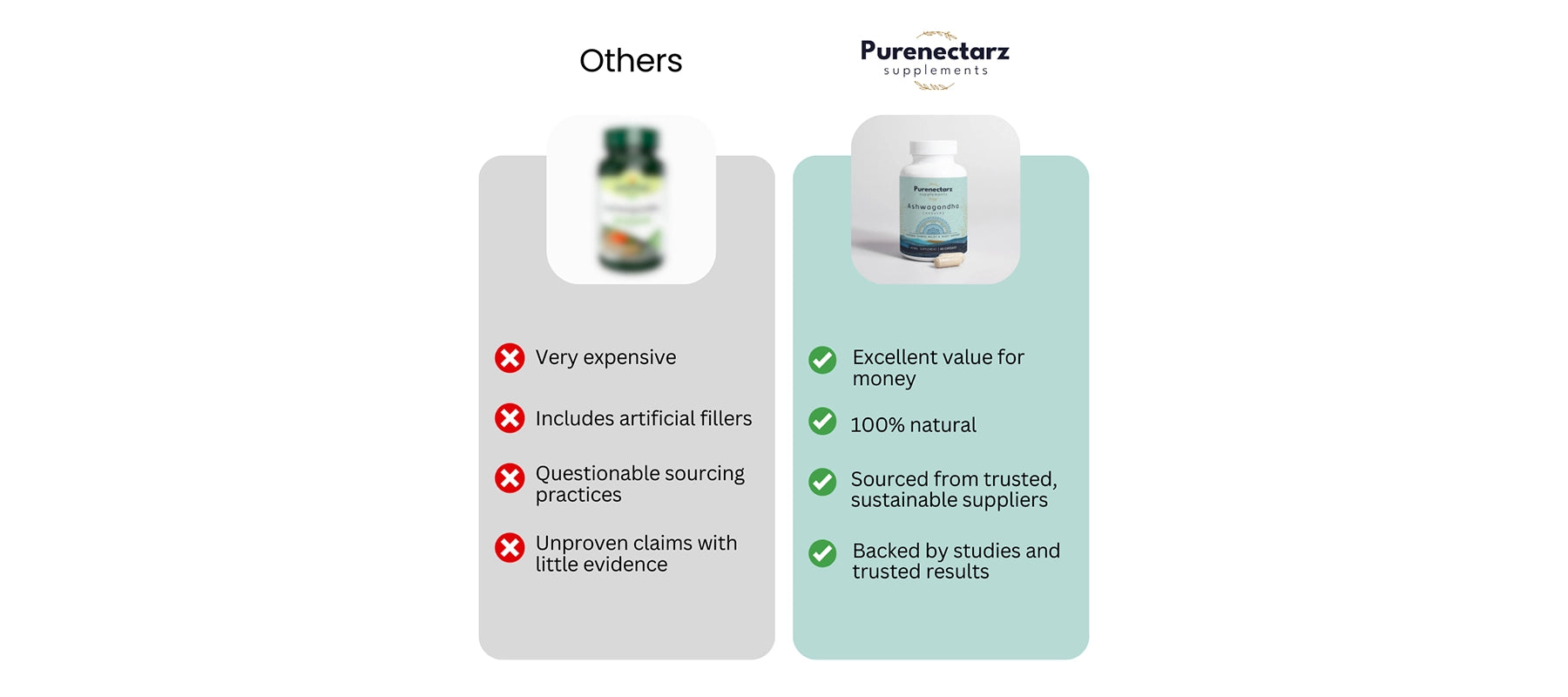 Our formula uses organic Ashwagandha with black pepper for superior absorption, is free from additives, and is rigorously tested for quality.