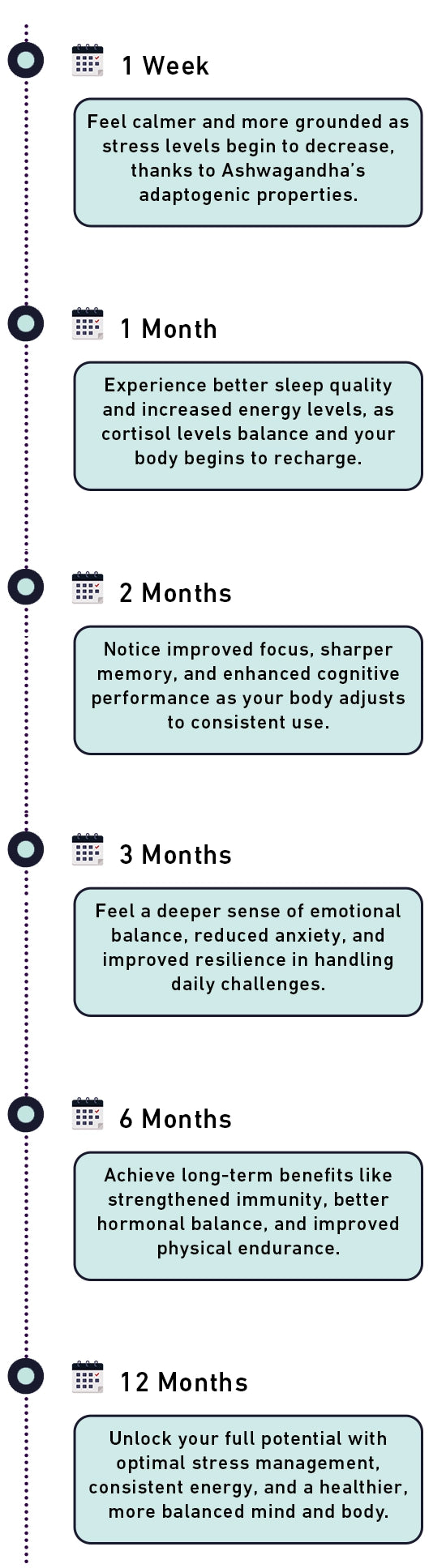 Most users notice improvements in stress and sleep within 2-3 weeks of consistent use. Results may vary depending on individual needs.